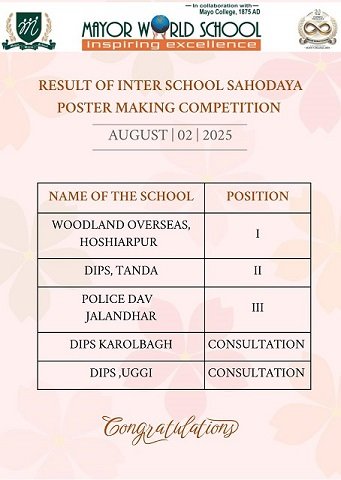 Result of Inter School Jalandhar Sahodaya Poster Making Competition Hosted Mayor World School 02-Aug-2025