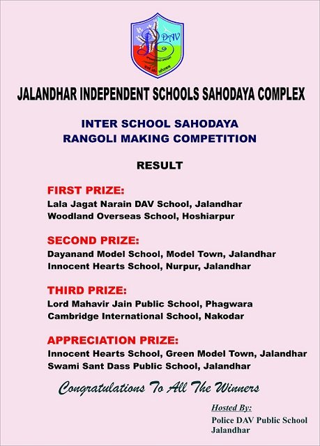 Result of Inter School Sahodaya Rangoli Making Competition Hosted By Police DAV Public School Jalandhar 17-Oct-2025